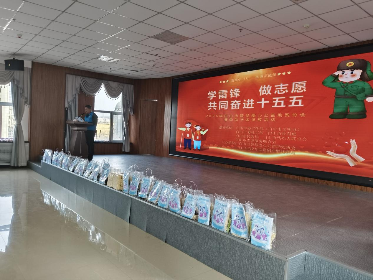 为深入贯彻落实习近平总书记关于弘扬雷锋精神的重要指示,结合2026年“学雷锋月”主题,3月8日,白山经开创新创业孵化基地与白山市智慧爱心公益助残协会联合举办《学雷锋做志愿 共同奋进“十五五”》活动,通过春季助学金发放及志愿者表彰活动,传递社会温暖,助力残疾学生及困难家庭学生成长,凝聚志愿服务力量,为“十五五”期间公益事业发展奠定基础。